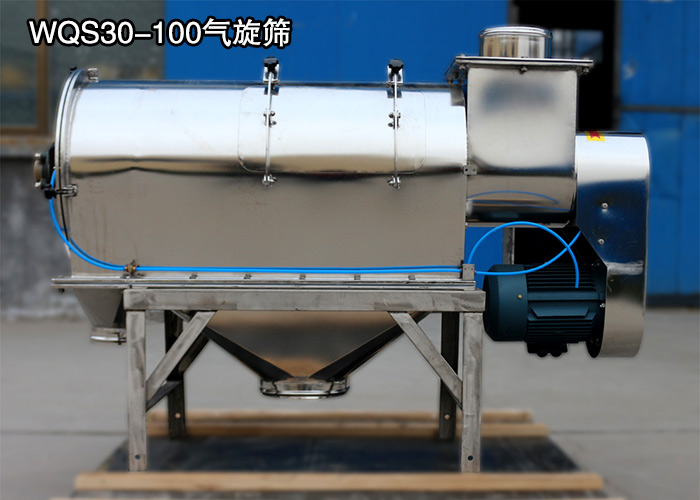 這是南京某食品公司在我們公司采購(gòu)的一臺(tái)WQS30-100型氣旋篩,使用在奶粉的粗細(xì)料分級(jí)上。氣旋篩設(shè)備擯棄物料重力透網(wǎng)作業(yè)原理,采用空氣作動(dòng)能作業(yè)原理。其篩分效率高、產(chǎn)量大、自動(dòng)進(jìn)料排料、連續(xù)作業(yè)、無污染,使以往用各種振動(dòng)篩難以進(jìn)行高細(xì)度精密篩分作業(yè)成為易事。